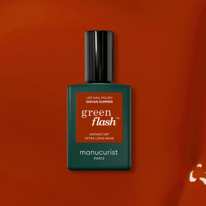 Le vernis indian summer, vernis LED semi-permanent rouge ocre de la gamme Green Flash™.